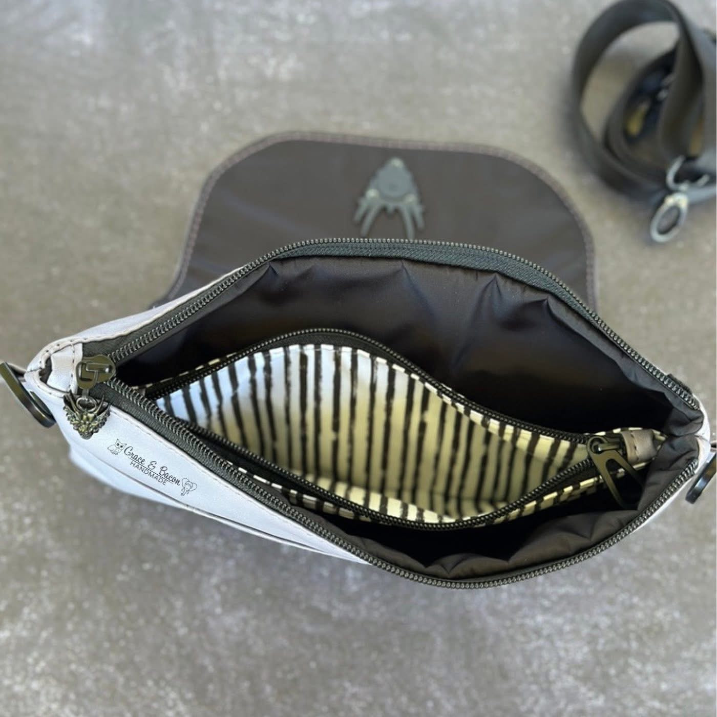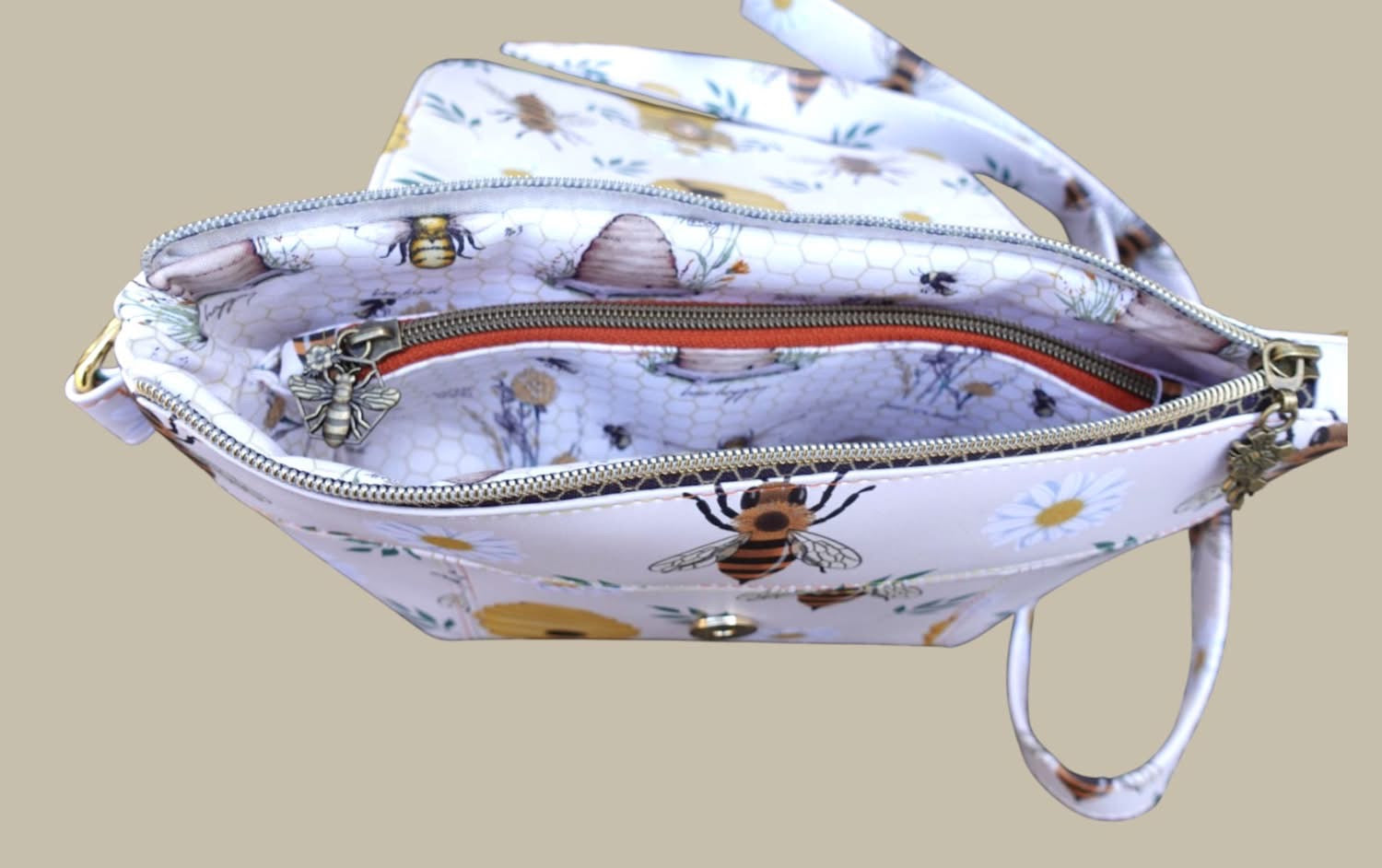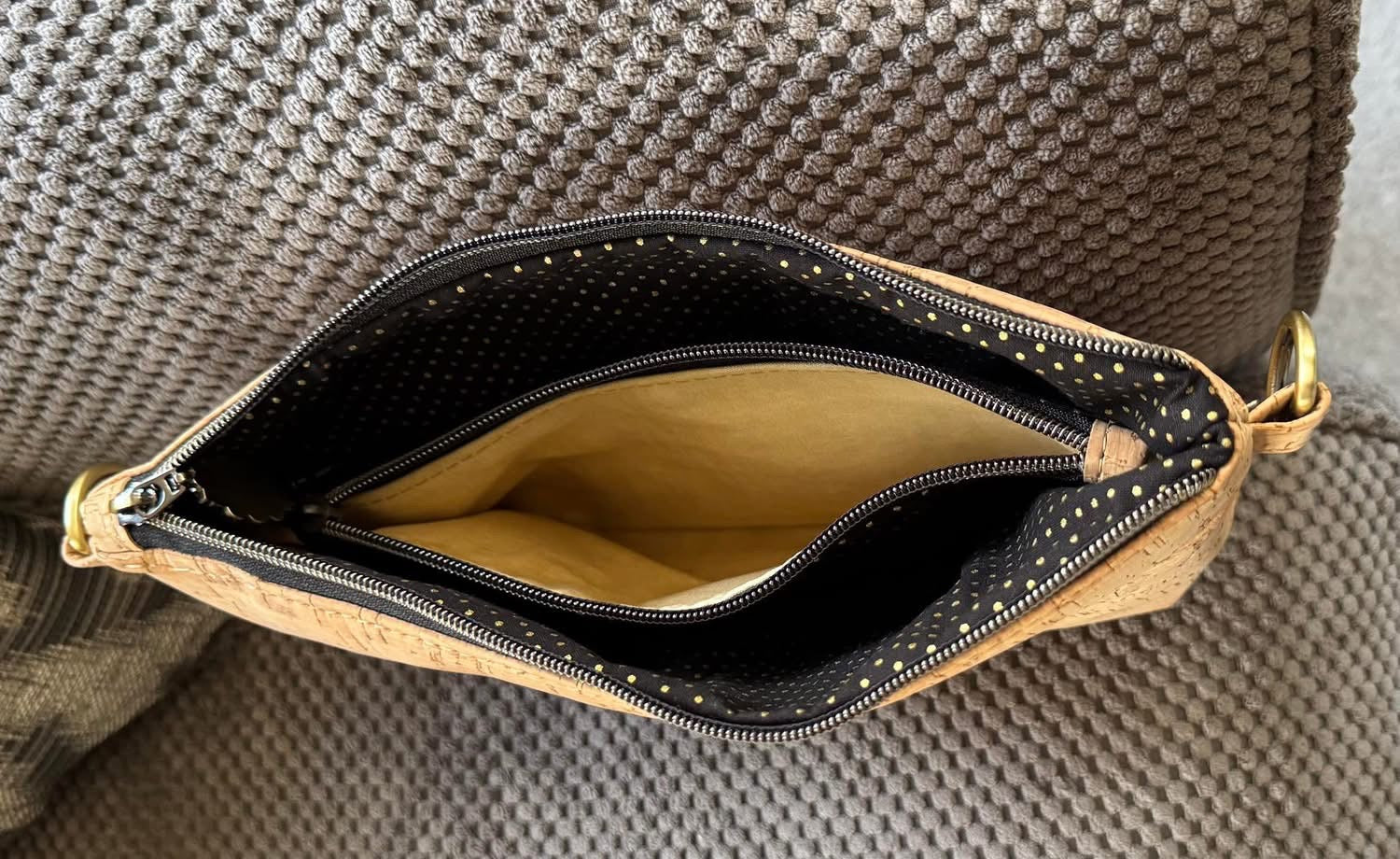 - Zipper, #5 size: 9” length (divider pocket) and 11” (Main) , each with one zipper pull